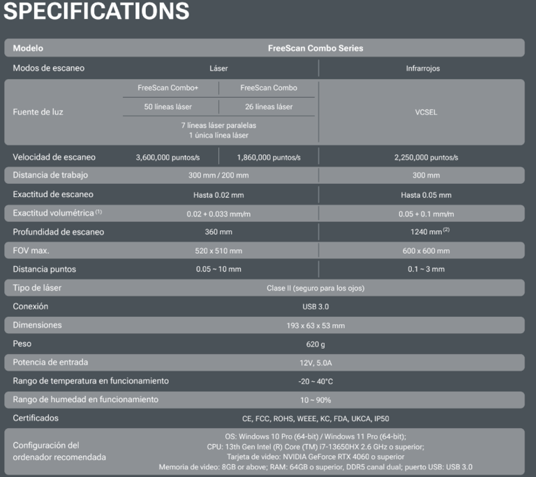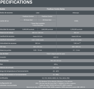 Los escáneres de la serie FreeScan Combo incluyen fuentes de luz duales en una carcasa ultracompacta de sólo 193 x 63 x 53 mm. Contamos con modelo FreeScan Combo y FreeScan Combo +.