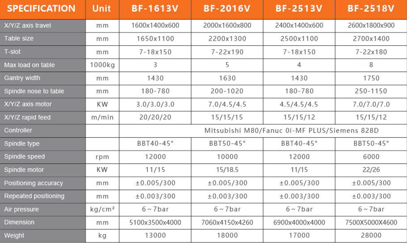 Los centros de maquinado de doble columna (como los modelos Baofeng BF‑1613V, BF‑2016V, BF‑2513V y BF‑2518V) son máquinas CNC de gran tamaño y alta rigidez diseñadas para mecanizar piezas grandes y pesadas.