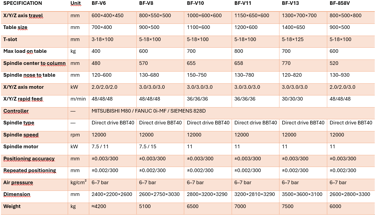 Diseñados para maquinado CNC vertical de alta precisión y alta productividad, con guías lineales en los ejes X/Y/Z, control CNC (Mitsubishi o Fanuc), y capacidad para operaciones de fresado, taladrado, roscado y mandrinado en una sola sujeción. La serie es adecuada para producción de piezas pequeñas y medianas en moldes, automotriz, maquinaria, etc.