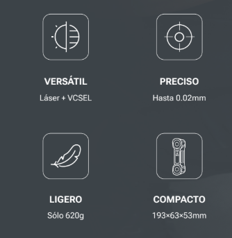 Este escáner 3D portátil ofrece cuatro modos: escaneado de líneas múltiples, escaneado de una sola línea, escaneado fino y escaneado por infrarrojos.